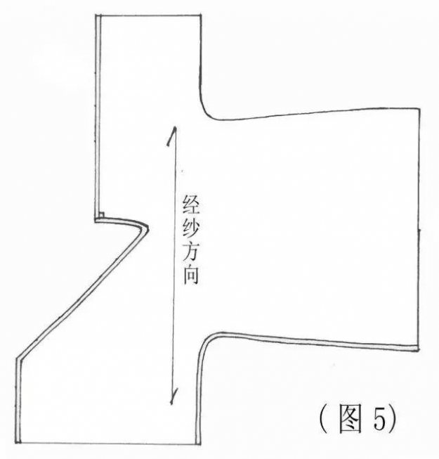 长方形与那块大大的弯勾的布构成下裳,再除掉两个袖子,剩下就是上衣了,总共三块,其中那小三角是加在左衽的,那里有一只角露在布料外了。