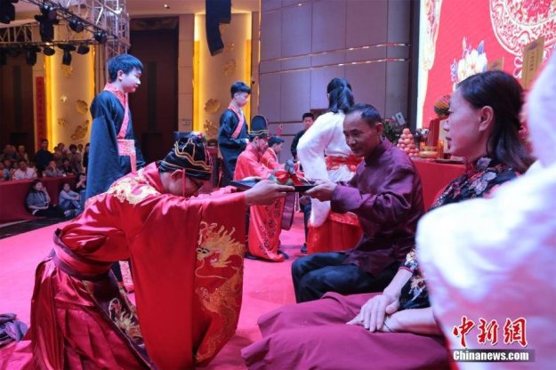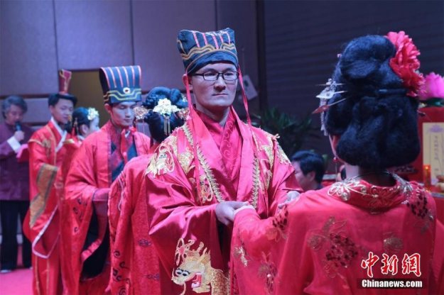 5月7日,在数百名来宾的见证下,一场中华传统文化集体婚礼在大冶举行。三对新人穿汉服行周礼,倡导文明节俭婚嫁新风,不大操大办、不收礼金、不放鞭炮、不发烟。整个婚礼古朴简洁而不失庄重, 充满了浓浓的传统文化气息。