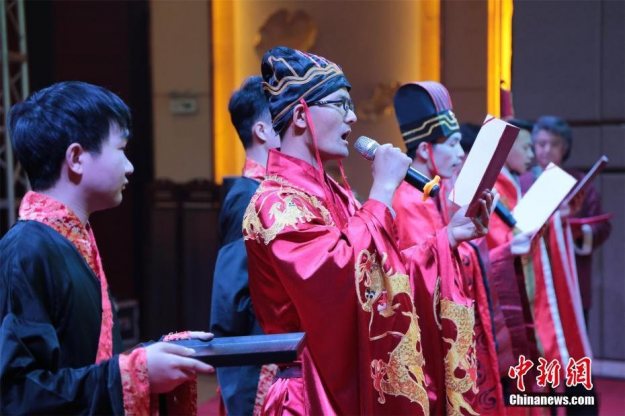 “汉式婚礼以周礼为蓝本,以典雅、尊贵、庄敬为气韵,是体现中华传统文化的民族婚礼。”新郎冯昭与新娘周侠都是传统文化的爱好者,他们希望通过自己的行动传播传统文化,让“夫义妇德”的优秀家庭美德伦理得以传承。