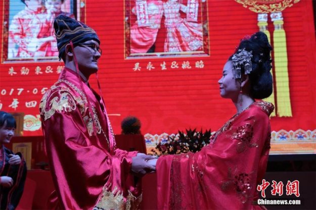 穿汉服行周礼 大冶三对新人举办传统集体婚礼