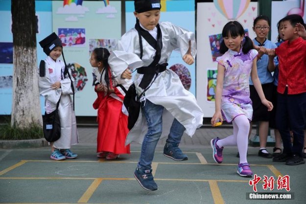 夫子庙小学庆110华诞 小学童们着汉服萌哭 中国青年网 2017-05-20 09:06 穿着古装的孩子在玩跳格子 茶艺展示 孩子们学唱京剧 孩子们展示他们绘制的脸谱 穿着古装的孩子学习《论语》 400小乐手玩快闪、汉服抖嗡、手绘脸谱、学唱越剧……5月18日,南京夫子庙小学迎来建校110年校庆日,全体师生身着盛装,在校内外开展了系列活动,让孩子们在快乐中感受传统文化课程的精深和魅力。南京市夫子庙小学始建于1907年,1958年在现址上复建,是中国最早兴办的新式学校之一。学校秉承孔子教育思想,坚持以科研为先导,探索素质教育的校本模式,走出一条以“自主学习”为特色的素质教育新路。