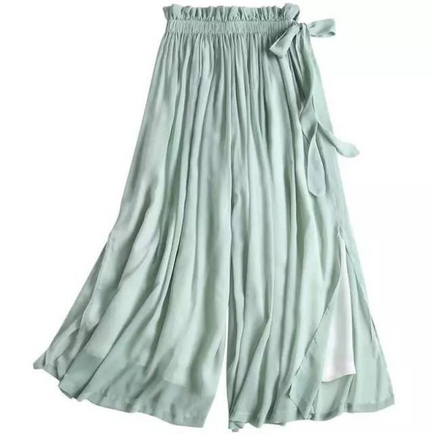 近两年大热的阔腿裤,想必姑娘们已经人手一条了,其实在千年以前,我们的先人就已经在引流这股风尚。大家都知道传统宋裤开裆,现代汉服商家们为了穿着方便,大多进行了再创造,不论是松紧带还是系带款,我们都可以称之为汉元素宋裤。