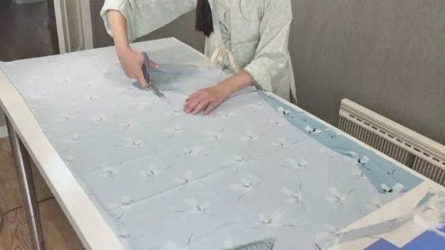 先在蓝色面料上画出版。