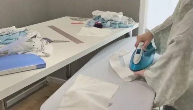 对折熨平。
