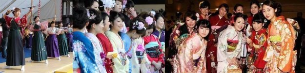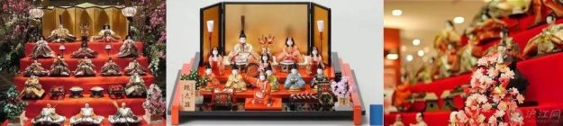 ▲在日本女儿节中仍有摆放女儿节人偶的习俗。这天,凡是有女孩子的家庭都会在客厅里设置一个阶梯状的偶人架,在上面摆放各种穿着日本和服的小偶人和橘花或樱花的盆景,以庆祝女孩健康成长。在节日中,祭偶人这种活动起源于中国。古代的中国人认为三月三日是个不吉祥的日子,因此要在这一天去河边或井边洗脚,以祛除不祥,这种方式称为「修禊」,后来演化成为在风和日丽的日子里到水边饮酒作诗。显宗天皇元年,这种风俗流传到日本,后来,日本又将酒杯换成偶人,并用棉花将偶人包起,擦拭人体,然后让其顺水漂走,据说这样可以免除疾病。