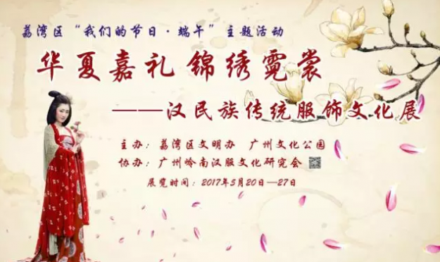 近日,由广州市荔湾区文明办、广州市文化公园主办,广州岭南汉服文化研究会协办的“我们的节日·端午”主题活动之《华夏嘉礼·锦绣霓裳——汉民族传统服饰文化展演活动》在广州文化公园中心台和文荟馆盛大开幕。活动内容包括服饰展出,汉服文艺演出以及汉服风采外拍活动。