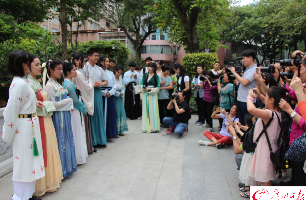 当天上午还同时进行了汉服风采外拍活动,吸引了广州及周边地区的大批汉服摄影爱好者的热情参与。拍摄活动主要在广州文化公园社会主义核心价值观主题园——文明苑进行。当身着各式汉服的模特,身处在岭南园林气息浓厚的文明苑里,一颦一笑一回眸,都演绎着汉民族特有的端庄优雅,彰显着中华礼仪文化之精髓。