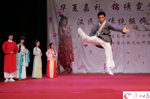 中心台上演的汉服展演活动吸引了大批市民驻足欣赏,来自广州岭南汉服文化研究会的文艺部的成员表演了汉民族舞蹈、茶道展示、武术、琵琶演奏等等节目,其中汉服汉礼展示是整场演出的重点节目。