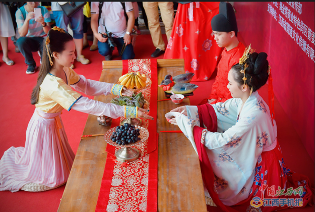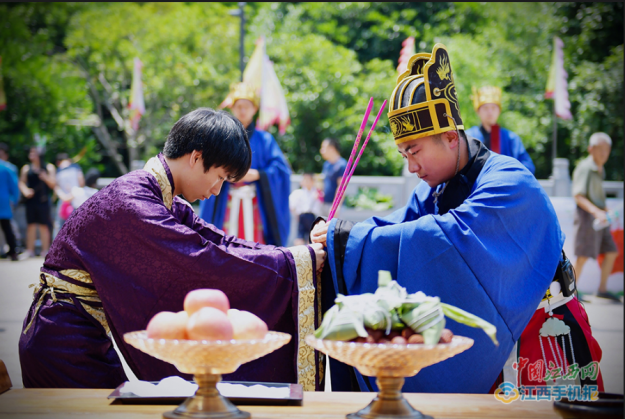 端午祭: 南昌与汉服的那场邂逅 江西新闻网 2017-05-28 05:38 华美兮汉服,长歌兮端阳。祭屈原、行汉婚、射箭阵……5月27日上午,南昌绳金塔来了一群年轻人,他们身穿不同款式的汉服,以丰富多彩的传统活动,纪念我国传统佳节端午节。跨越2000多年时空,汉服正激起一大批南昌年轻人的热爱。伴随着优雅的古典乐曲,汉服爱好者们身穿汉服,行汉式婚礼。两位“新人”分别行了汉代婚礼仪式中的“同牢礼”、“结发礼”、“执手礼”等七个礼仪。“现在有很多传统节日和习俗已经被人们渐渐遗忘。今天的着汉服祭祀活动只是一个载体,能让更多人认识汉服,了解汉服文化。希望今后能有更多的人加入到传统文化的传承活动中来。”汉服爱好者夜染说。 男子着上衣下裳制交领齐腰襦裙,行汉礼仪祭屈原。近十位身着华丽长袍的“祭祀官”上台,他们有的发令,有的端盘,有的举着竹简,按顺序依次上前跪拜,最后诵祭文。记者看到,整个祭祀花费半个小时,将古代端午祭祀典礼完整呈现,让市民重温了一场正宗的古代端午习俗。弓箭手们身着汉服,手拿弓箭,重现金戈铁马、万箭齐发的壮丽场景。前来观看的李先生表示:“通过今天活动让我们对这些传统习俗有了更直观的了解,能更好地把传统文化弘扬发扬光大。”市民曹女士赞叹说道,对于现代人来说,过端午节好像只是吃粽子,其实端午的习俗有很多,像这种能把传统习俗传承下来活动非常好。 5月27日上午,南昌绳金塔来了一群年轻人,他们身穿不同款式的汉服,以丰富多彩的传统活动,纪念我国传统佳节端午节。