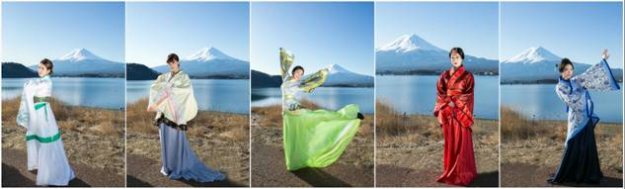 中国女大学生富士山前汉服留影