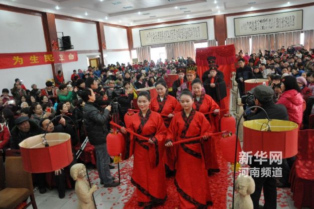 河南新人喜爱传统文化 举办汉服婚礼