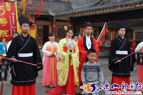 乐山新闻网讯(记者 杜娟)2月19日,正月初一,2015年嘉州大庙会在嘉州长卷天街和嘉定坊举行,一系列丰富多彩的活动吸引了许多游客和市民前往参与。其中,每日上、下午由嘉州汉韵研习社带来的“嘉州古韵”汉代主题文化演绎更是吸引了大家的眼球。 乐山新闻网讯(记者 杜娟)2月19日,正月初一,2015年嘉州大庙会在嘉州长卷天街和嘉定坊举行,一系列丰富多彩的活动吸引了许多游客和市民前往参与。其中,每日上、下午由嘉州汉韵研习社带来的“嘉州古韵”汉代主题文化演绎更是吸引了大家的眼球。