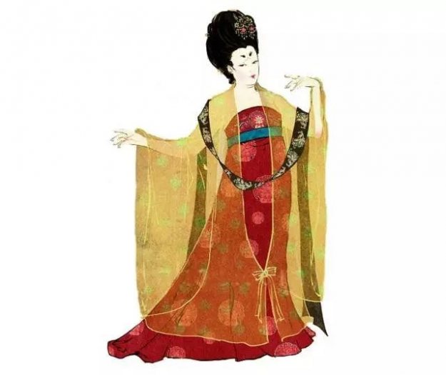 唐代妇女的裙子长度与前代相比有明显的增加,裙裾曳地在当时是常见的现象。正如孟浩然《春情》诗:“坐时衣带萦纤草,行即裙裾扫落梅。”为显示裙子的修长,妇女着裙时多将裙腰束在胸部,有时甚至束至腋下,裙子的下摆则盖住脚面,有时在地下还拖曳一截。