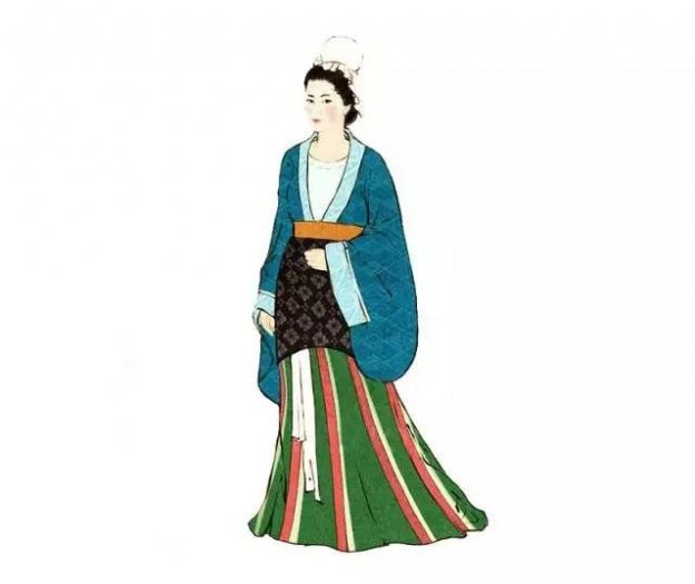 魏晋南北朝时期,妇女流行在衣裙的下摆部位加一些饰物。装饰通常以丝织物制成,上宽下尖形如三角,并层层相叠。走起路来,如燕飞舞。