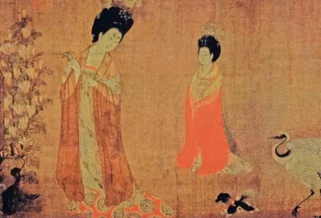 《簪花仕女图》是目前全世界范围内唯一认定的唐代仕女画传世孤本。画中描写的是唐代当时贵族妇女的日常生活,她们那高髻簪花、晕淡眉目,露胸披纱、丰颐厚体的风貌,突出反映了中唐仕女形象的时代特征。从画中可以看出唐代女性对花和花香的喜爱。