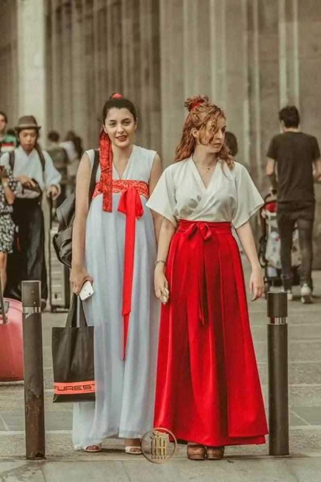 这群外国人,竟然把汉服穿成了时尚大片! 古典新风尚 2017-06-26 02:59 我一个朋友,就是图片最后那个男生,上次风尚君就是在他的策划下体验了一场秦汉时期的汉宴,颇有意思。不久前他又去巴塞罗那会见朋友,行李箱塞满了满满的一箱传统服饰,而这些都是他送给外国朋友的礼物。这次带的有传统汉服和汉元素,以及立领长衫等经典中国风元素。朋友们当即便穿了起来,跟她们随身的衣服混搭,居然穿出了不一样的时尚感,这一张张的简直是名模大片啊。外国人穿汉服,当然比不过中国人穿西装那么理所当然。毕竟汉服作为汉民族的传统服饰才刚刚复兴十几载,甚至很多中国人都还不知道。所以当我们在更多人身上得到文化认同感的时候,总是会不免多一分自豪。这些优秀的文化被遗忘了太久,我们总是迫不及待的想让更多人知道并喜欢。曾经也遇到过一个外国友人问我,为什么平时生活中看不到中国人穿汉服,甚至好像很多人还不知道。中国是个多民族国家,但是外国人对中国的文化印象肯定是以主流文化为主。所以很多外国人一直觉得旗袍代表了中国几千年的服饰文化,旗袍确实很美风尚君也很喜欢,但是旗袍是来自满族传统服饰的演变,也就百年的历史。现在大多数人已经习惯把西装作为平时重要场合的服饰,但西装又是源自英国王室的传统服装。56个民族的大合影,少数民族都有鲜明的民族特点,汉族总是穿着西装。当然也有很多人觉得汉服不够方便,宽袍大袖又长裙及地的极不合适现在快节奏的生活。其实汉服有礼服盛装也有日常休闲,几千年的服饰体现早已完备。而且在服饰文化交融的今天,也可以尝试混搭,风尚君平时就是汉服混搭出行,当然仅仅限于常服,礼服还是尽量严谨规范。混搭也可以很随性,以舒服自然为主,来看看这几位外国朋友是怎么随性搭配的吧。这套齐胸襦裙脱掉里面的上襦只留下外面的半臂,穿出了随性慵懒风,立刻清爽了许多,虽然只是随意搭配就把汉服穿出了她自己的风格。应该很多妹子要对着这张照片舔屏了,欧式的儒雅加上中式的风度,果然“绅士”和“君子”之间只差一件衣服。这一个回眸.....不说了你们自己体会。正面看才看出穿的是一件交领汉元素,随着汉服被大众接受,汉元素也算是引领了一波潮流,国际上的中国风设计也慢慢出现了很多汉服元素的设计。织锦马面裙搭配短袖,风尚君知道反正不管怎么搭配她穿都好看,因为这位朋友是一位模特,虽然连续赶通告很疲惫但也挡不住名模的风采。这套搭配很好看但是只适合拍照啊,因为织锦马面是秋冬款料子很厚很沉,但还是很喜欢这套搭配的气场,霸气又端庄。这个搭配算是里面最大胆的了,用汉服下裙搭配蕾丝上衣,奇怪的是居然很少有违和感,这个搭配你们平常肯定想不到。漏肩针织衣搭配宋裤!这个搭配风尚君给满分,也许是颜色上比较协调,显得很日常很飘逸还很.....与众不同。虽然真的不是刻意搭配,但是这种随意却往往最出惊喜。由此可见,汉服真的很容易融入生活。穿这一套估计很容易被误以为是日本的巫女服,那是因为日本的文化已经得到国际上的文化认同,这就是一个民族的凝聚力。希望以后不管身在何处,一个转身如果看到你的身影,不要再被说是Japanese或者 Korean。因为一件服饰我们找到了民族自信,甚至很多朋友因为接触汉服然后去学习其背后的礼乐礼仪,比如古典乐舞,古典乐器,传统手工等等。很喜欢这一张照片,人群中只有这一抹红最亮眼,在国内都很少能偶遇这样的情景,更何况是在巴塞罗那。汉服都走出国外了,但是在国内还是很多人不知道,来说说你在大街上偶遇汉服的几率是多少? 外国人穿汉服,当然比不过中国人穿西装那么理所当然。毕竟汉服作为汉民族的传统服饰才刚刚复兴十几载,甚至很多中国人都还不知道。
