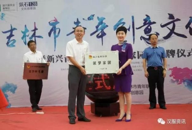 7月1日上午9点,由共青团吉林市委、吉林市青年联合会、吉林市筑石128文化创意园在筑石·现代服务业集聚区举办吉林市青年文化创意季暨新兴青年群体“筑梦家园”揭牌仪式,用一场别开生面的活动庆祝党的96岁生日。