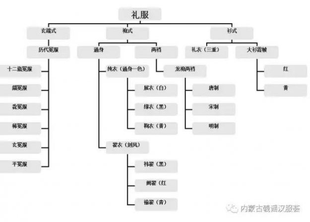 汉服的纹章及其丰富,周礼“以纹为贵”代表了汉文化的信仰和习俗[54] 。汉服中的纹章与汉人意识、认识中的天形地象、阴阳八卦、无形无色、吉祥图案等各类文化符号紧密像通用。