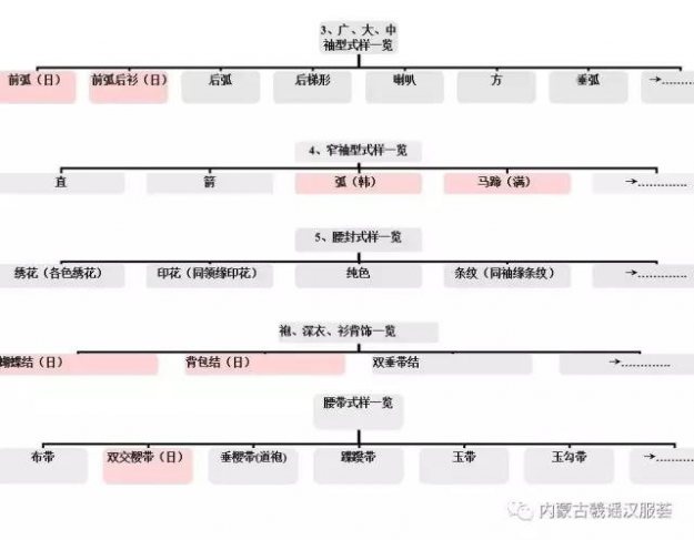 “汉服”一词的记载最早见于《马王堆三号墓遣册》:简四四“美人四人,其二人楚服,二人汉服”[1] 。又见《汉书》:“后数来朝贺,乐汉衣服制度。”[2] 这里的“汉”是指汉朝的服装礼仪制度,即《周礼》《仪礼》《礼记》里的冠服体系[3] 。汉服“始于黄帝,备于尧舜”[4] ,源自黄帝制冕服[5] 。定型于周朝,并通过汉朝依据四书五经形成完备的冠服体系,成为儒家神道设教的一部分。“乗殷之辂,服周之冕”是儒家治国思想的要义[6] 。因此后来各个华夏朝代均宗周法汉以继承汉衣冠为国家大事[7] ,于是有了二十四史中的舆服志。“黄帝、尧、舜垂衣裳而治天下,益取自乾坤”[8] ,是说上衣下裳的形制是取天意而定,是神圣的[9-10] 。汉服还通过儒家和华夏法系影响了整个汉文化圈,亚洲各国的部分民族如日本、朝鲜、越南、蒙古、不丹等等服饰均具有或借鉴汉服特征。