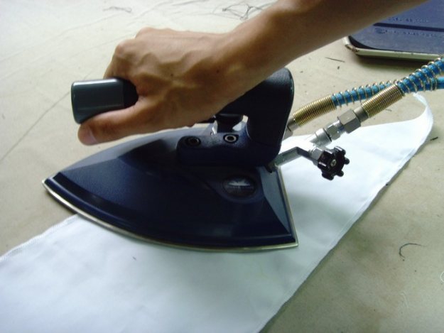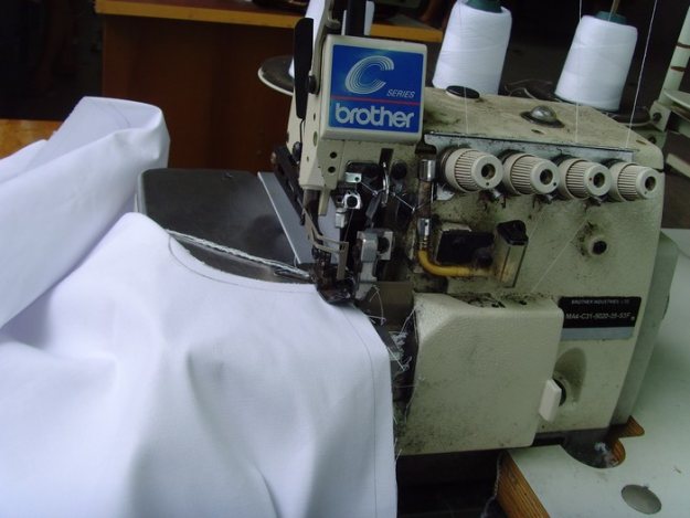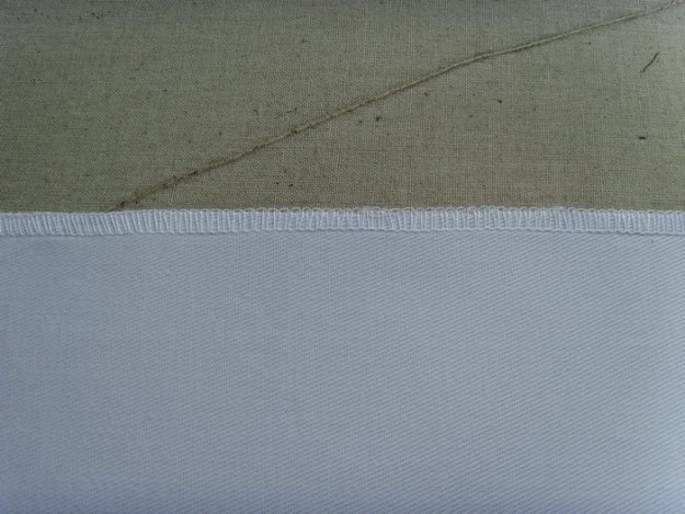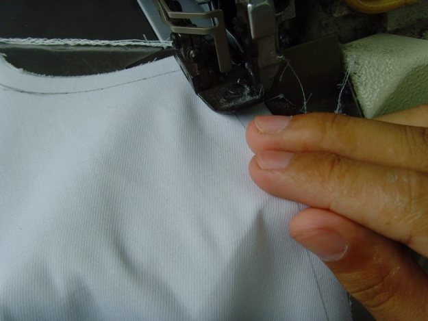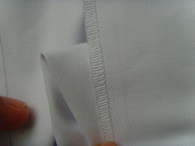 然后使用锁边机进行锁边处理,如果没有锁边机,则以后的操作就要使用“闷迹缝”,不然露出的缝边会起纱掉毛。