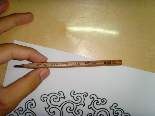 使用中性笔(笔头坚硬且细的笔都可以)在图纸的轮廓上描绘一遍,不要有遗漏。