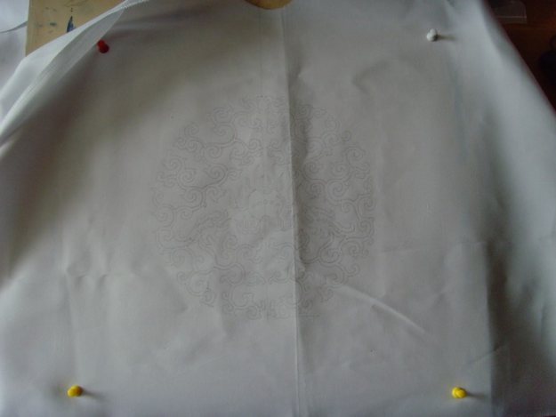 最后,揭去图纸,图纸背面涂上的铅,就被拷贝到面料上,形成一个淡淡的印记,但别担心,这个痕迹,做好之后,水洗即可清楚。