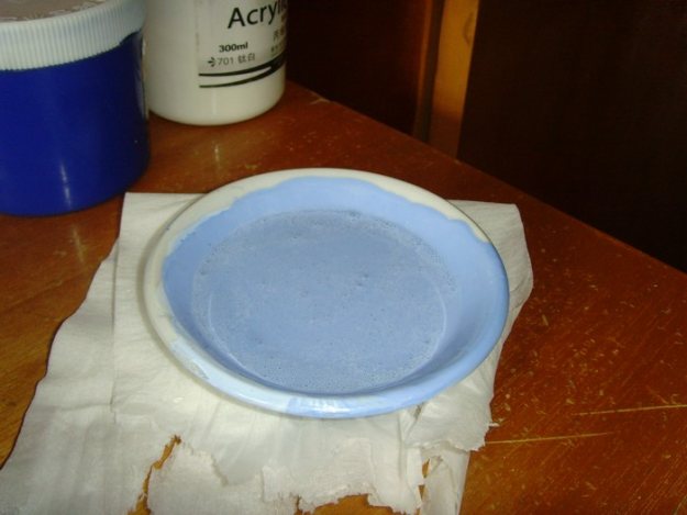 然后调好颜料,这里可以使用丙烯或纺织纤维颜料,这些在文具店均可买到。此类颜料,晾干后不易被洗涤褪色。