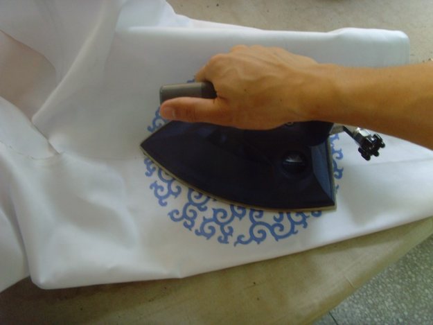 最后,自然晾干2天左右,再使用高温熨烫,目的是让颜料融化在纤维上,增强颜料的附着性。但务必注意,不要把衣料烫焦了。