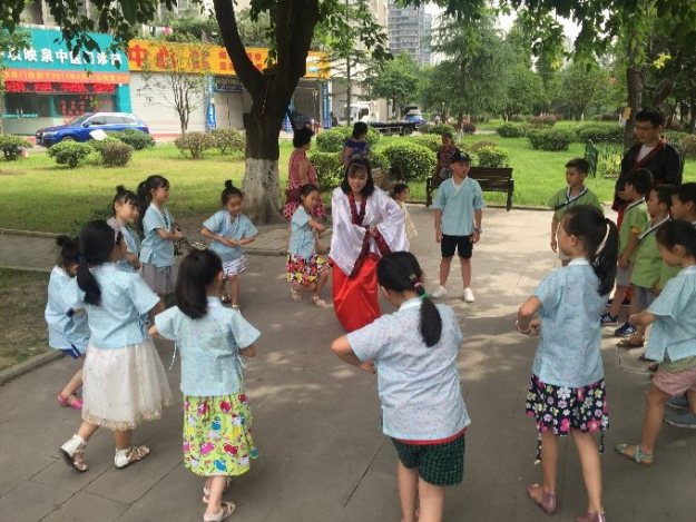 重庆师范大学文学院蒲公英社会实践服务团的大学生志愿者白雪冰告诉记者,他们是文学院大二的学生,这次是专门来给给小朋友教授汉学的,为此他们也特地备课一个多月,做了专门的PPT,从服饰开始介绍,让孩子们对国学,对汉服也产生兴趣。记者了解到,这些汉服都是由辖区一居民免费提供的,希望的是能让下一代学习更多中国的传统文化。