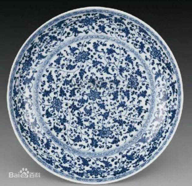 缠枝纹是中国古代传统纹饰之一。作为瓷器上最常见的纹样。盛行于元代以后。明代或称为“转枝”,以植物的枝杆或蔓藤作骨架,向上下、左右延伸,形成波线式的二方连续或四方连续,循环往复,变化无穷。缠枝莲、缠枝牡丹、缠枝草蔓均属此类。