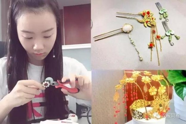 做首饰,是紫鸢当下的一大爱好。在网上买来材料,自己一步步摸索、设计,颇为耗费心力。“想到能给自己喜欢的汉服装点上美丽的首饰,觉得辛苦一点也是值得的。”紫鸢介绍,一般做成一个简单的簪子大约需要制作大半天的时间,遇到设计复杂的就需要几天不等了。“做首饰最难的就是缠线,不管多大的簪子,都不能看到一丁点线头露出,所以十分考验耐心。”