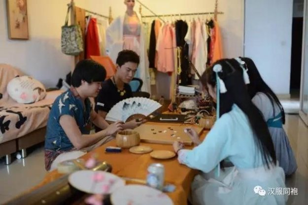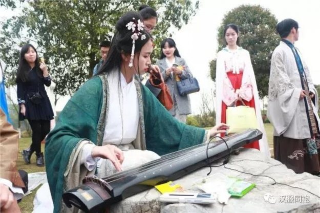 平时周末,汉服爱好者们也会有类似雅集的小聚会,弹琴、品茗、闻香,在浮躁的社会中,寻找一丝宁静。