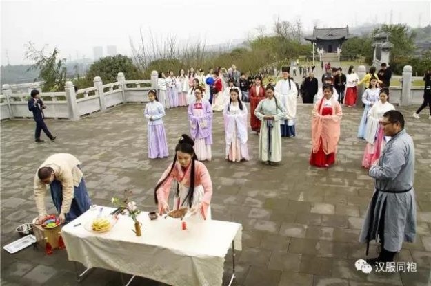 重庆某汉服爱好者群群主奕南,曾经在北京学习动漫专业。回到重庆后不久,他发现重庆的汉文化推广前景看好,于是结合自己的专业,设计服装、组织汉文化活动,现在群里的成员已有800余人。