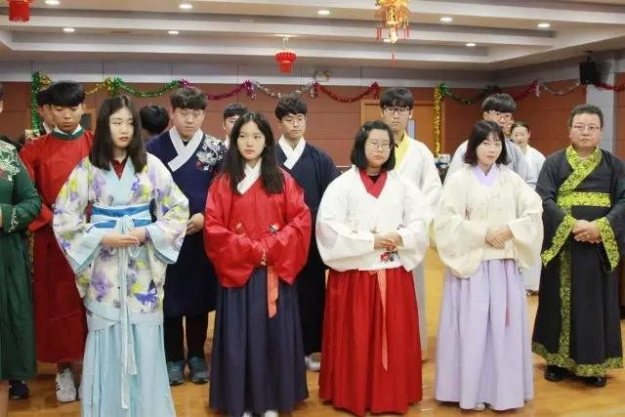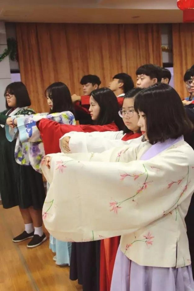 为了让韩国学生对汉服有更为直观地认识,归宁小伙伴带来一场别具一格的汉服展示,将曲裾的端庄大气、襦裙的娇俏灵动、褙子的清瘦质朴、直裰的清新俊逸展露无遗。
