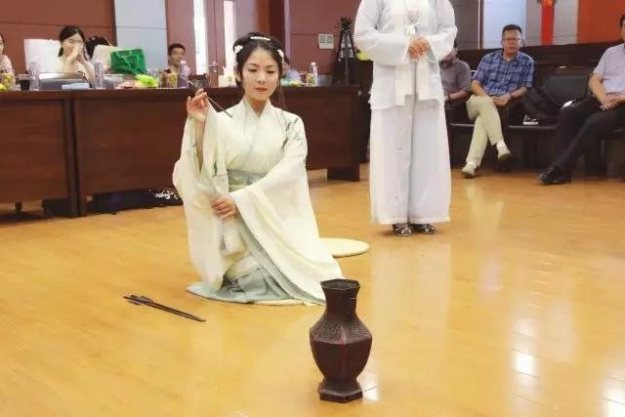 游戏环节,大家玩起了汉人宴饮场合中的经典游戏——投壶,看似简单的投壶游戏却蕴藏着许多礼仪细节,投进壶中可不是简单的事哦。