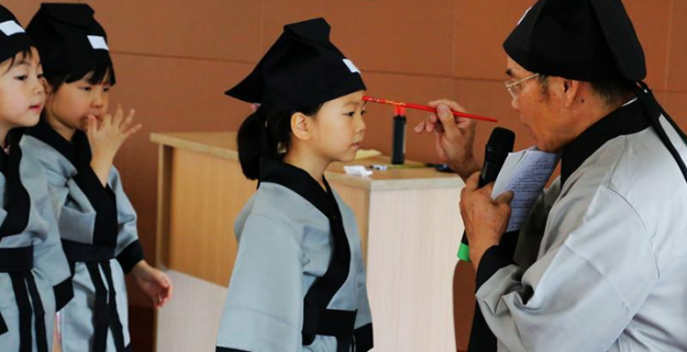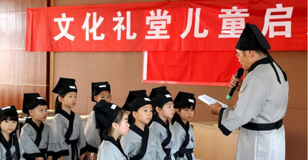 8月5日,在柯桥区福全镇尹家坂村文化礼堂,即将入小学的准新生身穿国学汉服,在启蒙老师的带领下,举行了“正衣冠、行师拜礼、朱砂启智、净手净心、开笔破蒙、学童诵读”等传统仪式,弘扬中华民族的传统文化,加强农村文化礼堂建设增添新内涵。