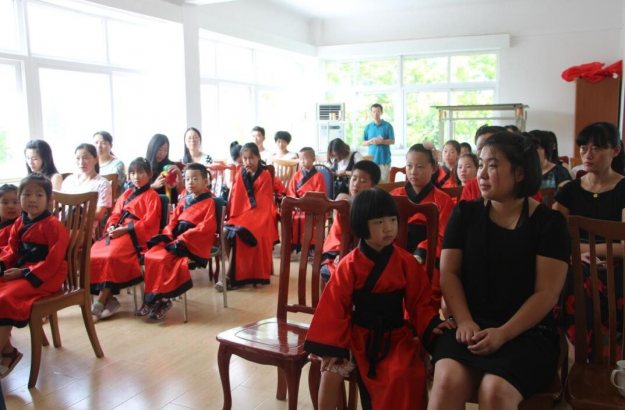 8月9日上午,青岛市崂山区王哥庄街道开展了 “国韵初识”传统文化——中华礼仪传承活动,来自各社区的20个家庭参加了本次活动,父母与孩子在接受国学熏陶的同时也增进了亲子间的感情。
