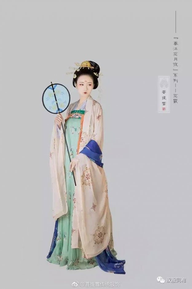 不过,我个人觉得,要是上襦和系带都换成与披帛相近的颜色会更好。