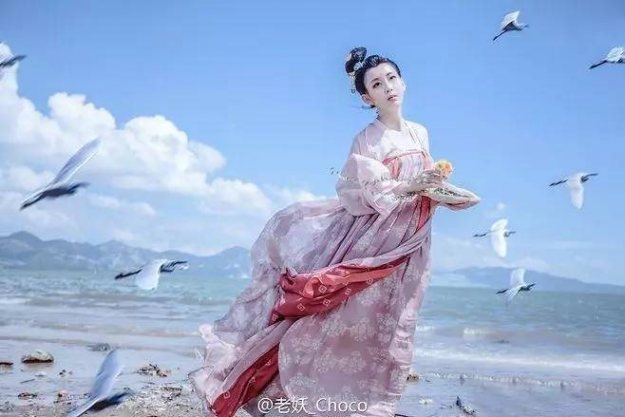 齐胸襦裙一般分为两种,一种是对襟齐胸襦裙,一种是交领齐胸襦裙,一般来说对襟齐胸襦裙的使用范围更加广一点。齐胸襦裙在唐朝仕女中非常盛行,现在保留的不少古画、出土文物都有它的踪迹。