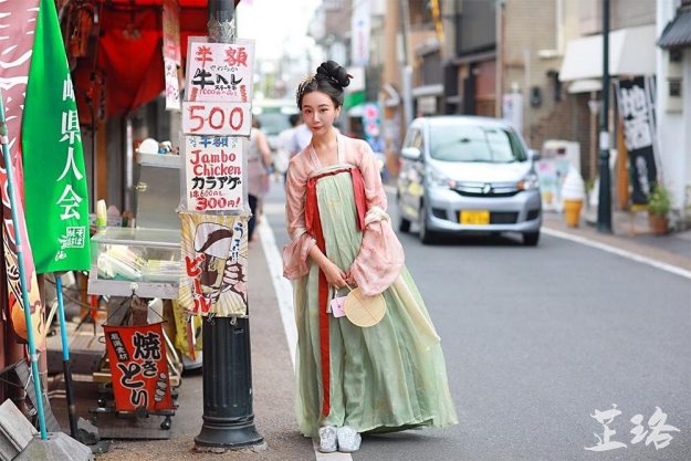 如今,芷珞在京都工作。中国籍老板很喜欢汉服,加上从事摄影工作的缘故,环境相对宽松自由,芷珞就身着汉服上下班,成为街头的一道风景线。虽然各个朝代的汉服形制有差异,但芷珞都很喜欢。她说:“天热了穿唐宋风格,天冷了穿魏晋明风格,一年四季都可以穿。”
