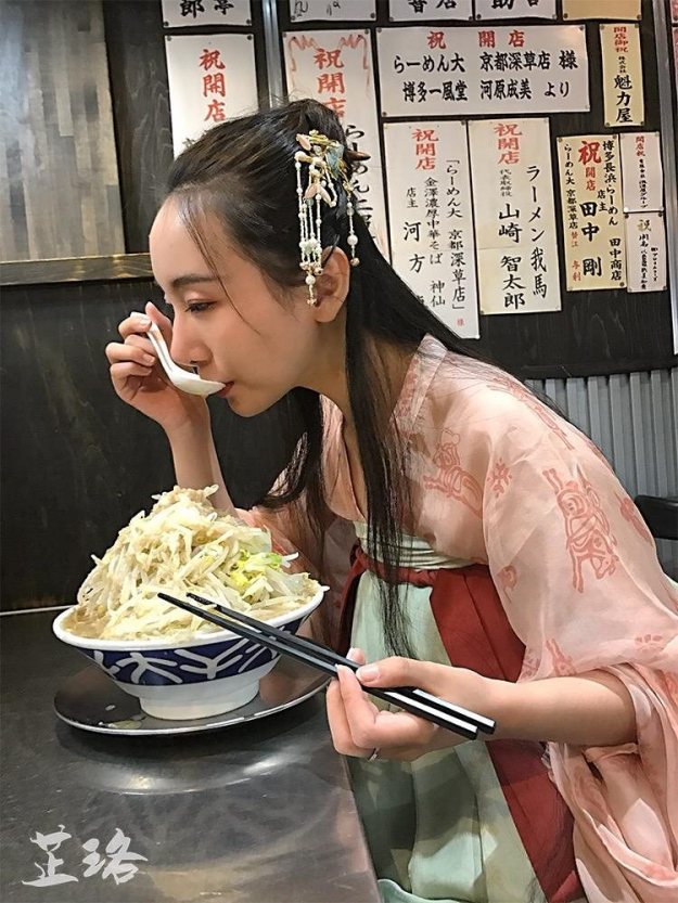 平时,芷珞身着汉服上班、购物、吃饭……由于京都是古都的缘故,看起来并没有什么突兀的地方。
