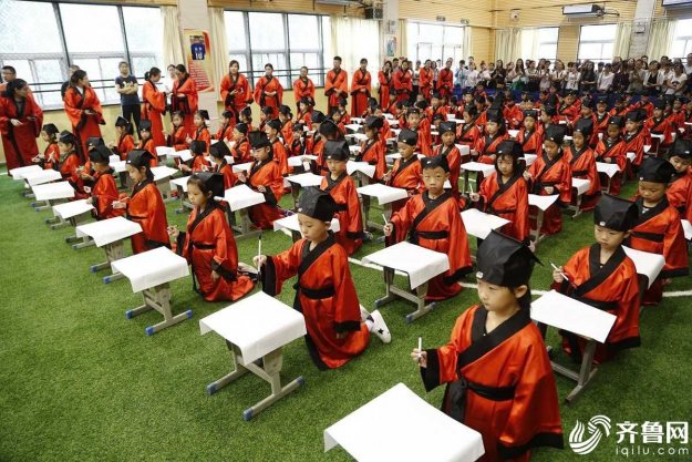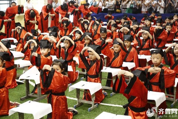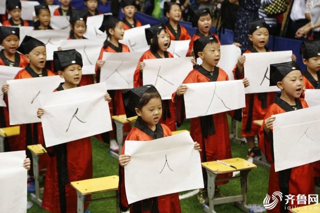 泰安500名小学新生着汉服参加开笔礼仪式