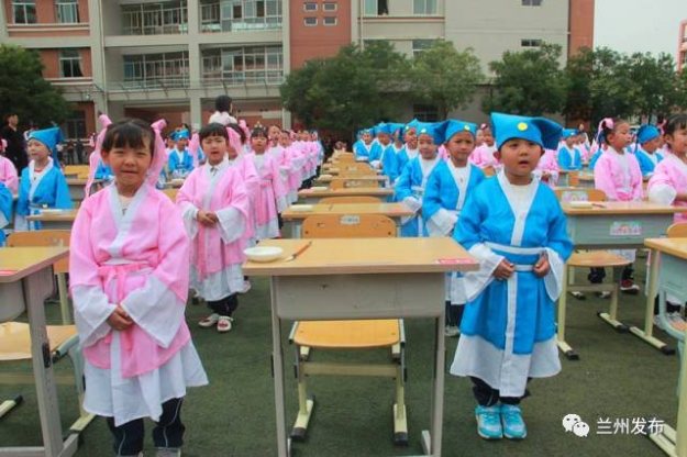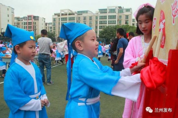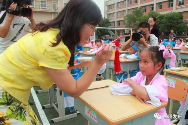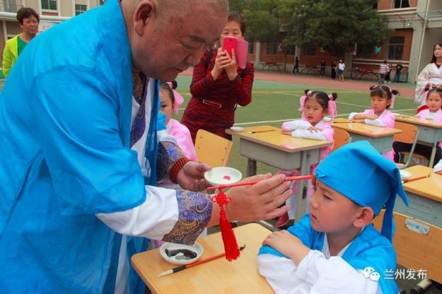 献礼教师节 !穿汉服行“开笔礼” 写下人生第一个“人”字