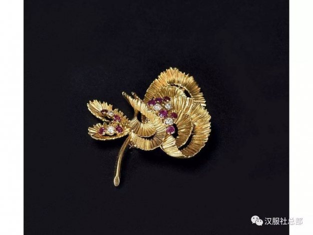 【胸饰】佩戴一枚胸针,常可产生画龙点睛的效果,尤其当衣服的设计比较简单或颜色比较朴素时,别上一枚色彩鲜艳的胸针,就会立即使整套装饰活泼起来,并具有动感。