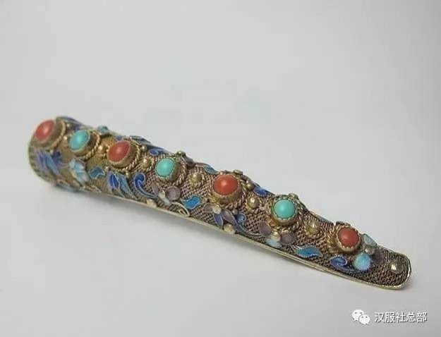 【簪】簪[zān]是笄的发展,同样起固定发髻之用,在前端加以纹饰,雕刻成植物(花草)、动物(凤凰孔雀)、吉祥器物(如意)等形,并可用金、玉、象牙、玳瑁等贵重材料制作,工艺也愈发丰富,有錾花、镂花及盘花等。