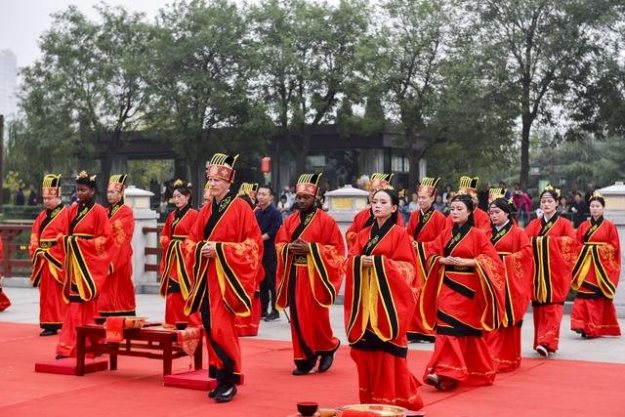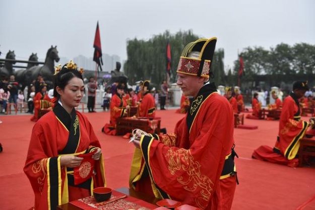 活动当天,有30对新人将共牢合卺,结发同心,并由著名文化学者商子雍为他们证婚,在汉城湖景区坝前平台参加这一场隆重庄严、华而不俗、喜而不闹的集体婚礼,用传承千年的礼乐见证爱情的海誓山盟!今年还有3对外国友人来体验我们中国的传统文化礼仪,感受中华文明之美。