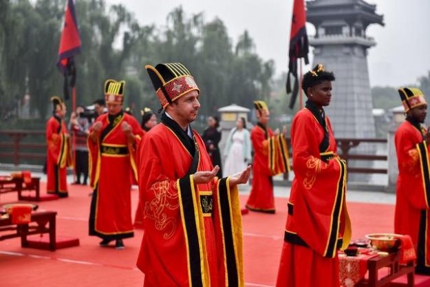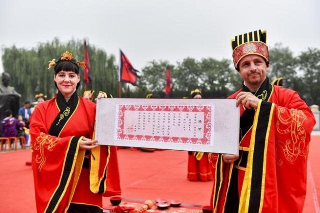 汉城湖第六届汉文化艺术节开幕 老外穿汉服感受中式婚礼