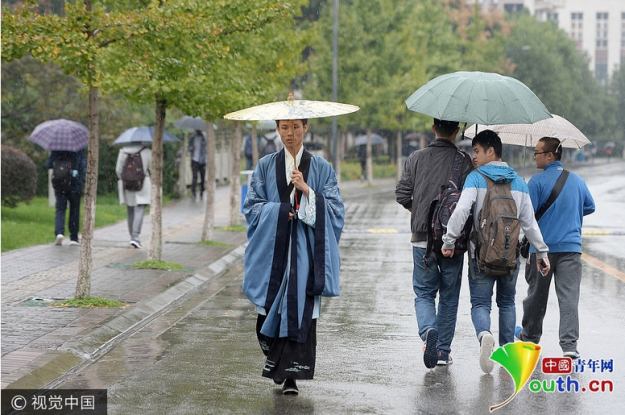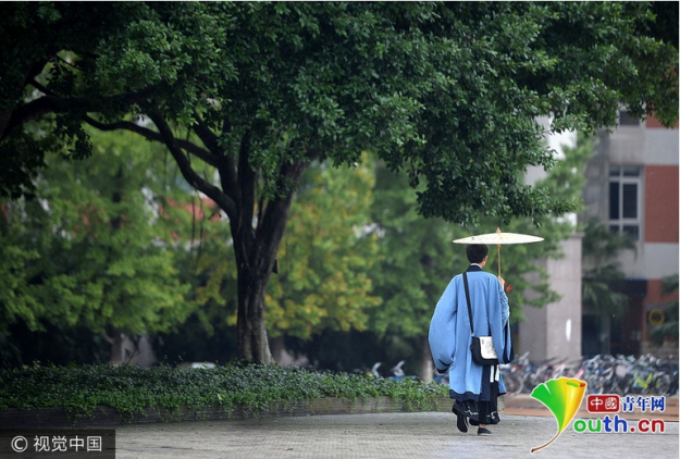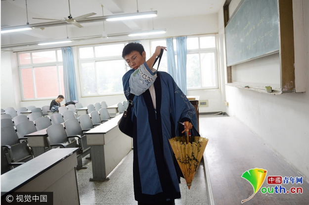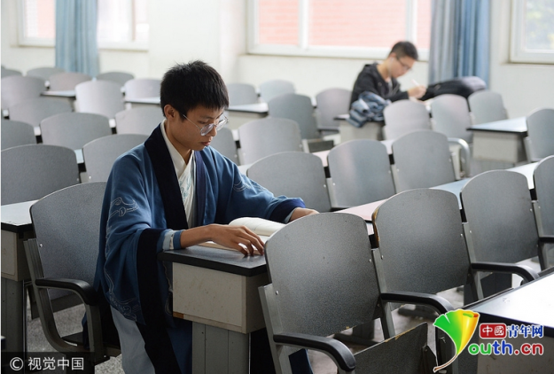 成都高校一男生每天穿汉服 还会抚琴作诗