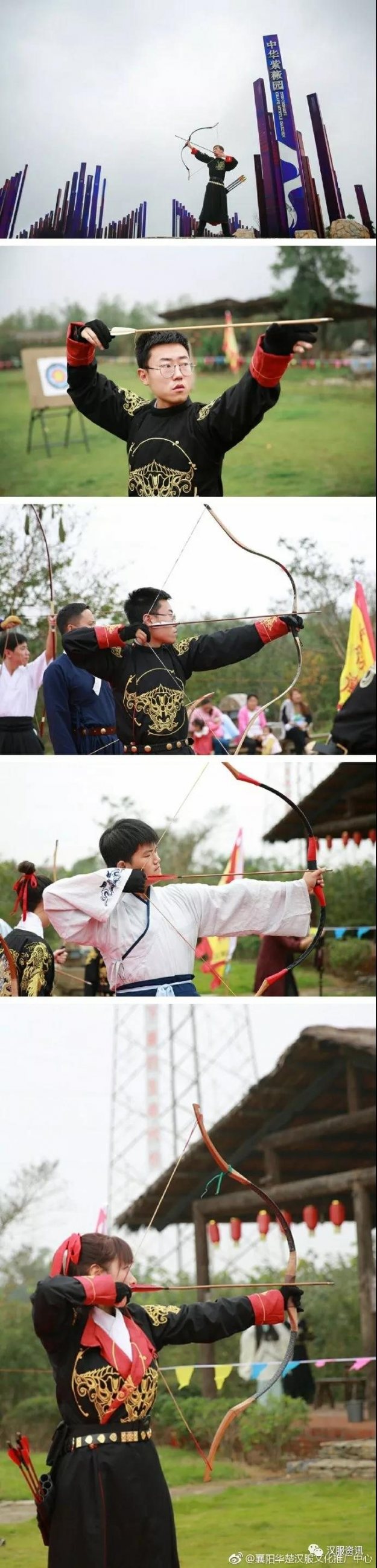 华楚汉服社擎翎卫在中华紫薇园举办了一次传统弓射艺比赛。