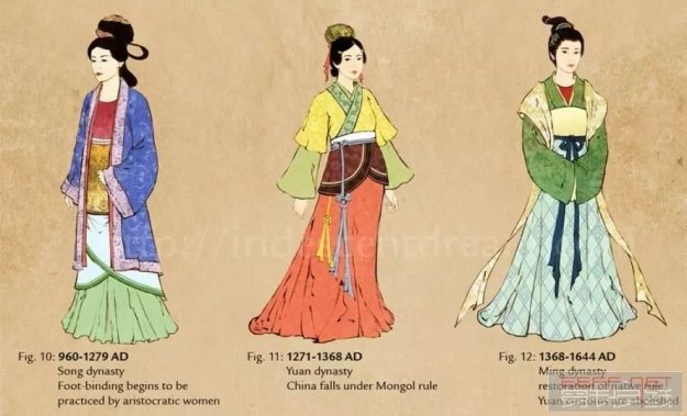 在春秋战国时代,人们普遍着深衣,上衣与下裳相连。深衣类似连衣裙,但略有不同之处。